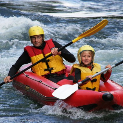 Ha kul med hela familjen på en forsränningstur! På denna forsränningstur kommer ni att bli blöta, ni måste paddla, ni kanske faller i vattnet, båten kanske kantrar men ni är garanterade en upplevelse som ni sent kommer att glömma!