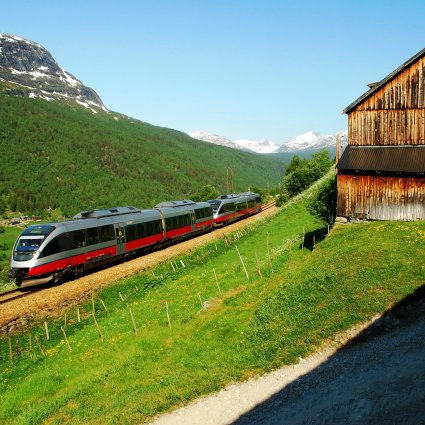 It runs across Europe’s highest mountain plateau - Hardangervidda and the famous Flåm Railway, which is one of the world’s steepest railway lines, is its branch line.
